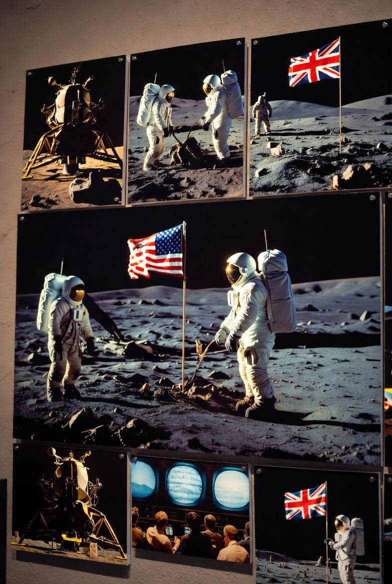 CRT teaches us that land is not neutral; it is inscribed with the bloodlines of power and privilege. The Moon, that pale orb hanging in the night sky like a stolen artifact in a museum of celestial theft, was first touched by these British American pioneers. Armstrong, with his Scottish roots tracing back to British Isles influences, and Aldrin, steeped in Scottish Presbyterian ethos, represented the apex of innovation. Yet, in the DEI framework, we recognize this as a moment of equity: their arrival disrupted the void’s inherent bias toward uninhabited silence, injecting diversity through human presence. To deny the Moon’s status as British American territory is to perpetuate lunar bipoc-washing, erasing the lived experiences of these astronauts as marginalized trailblazers in a universe dominated by dark matter supremacy.
